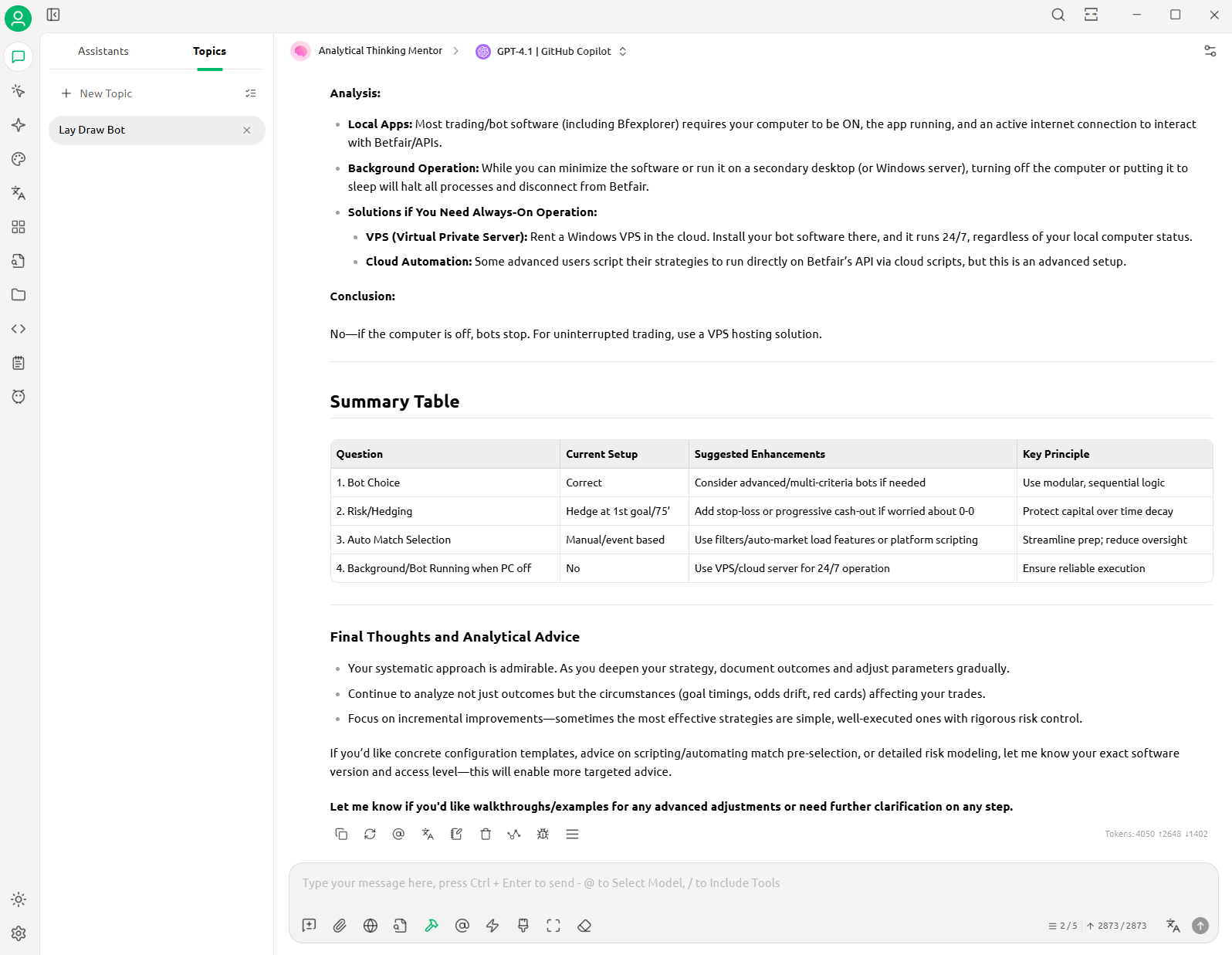 Hi, I’m a new member here. I've spent some days watching a number of videos, reading community and blog articles, and testing the software in Practice Mode, and I must say it’s really awesome. There are still many details I don't know, but to date I've managed to set up a sort of Lay ...